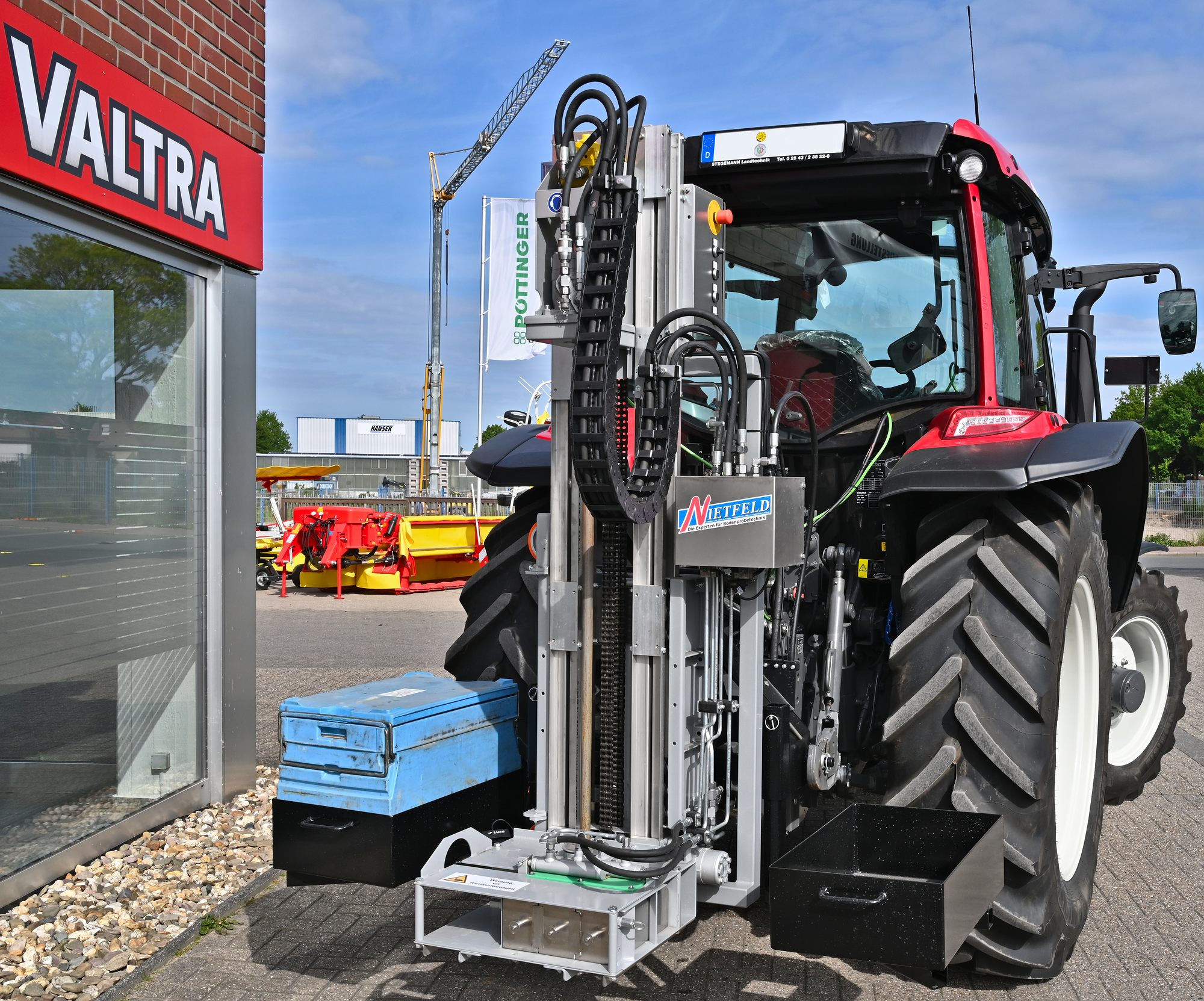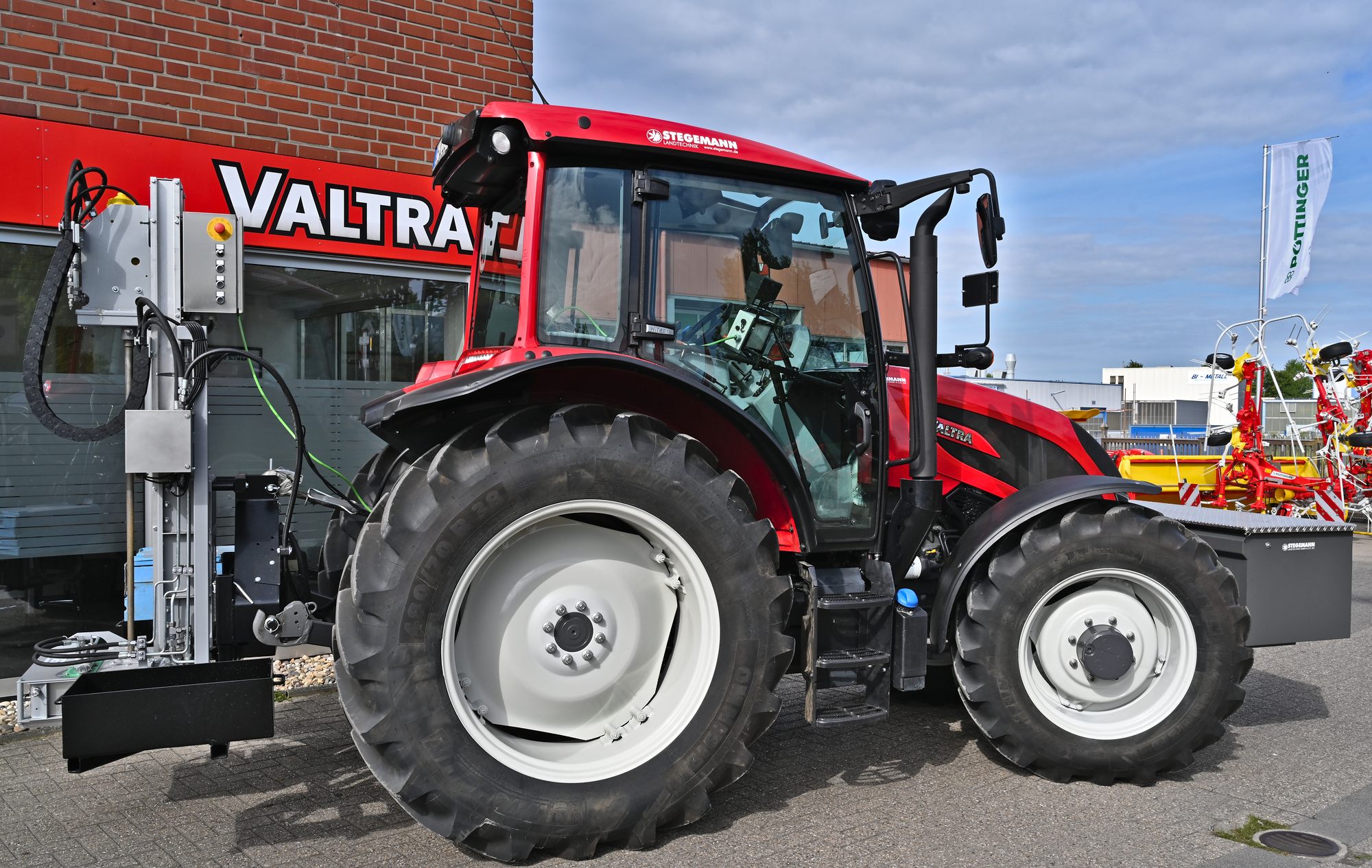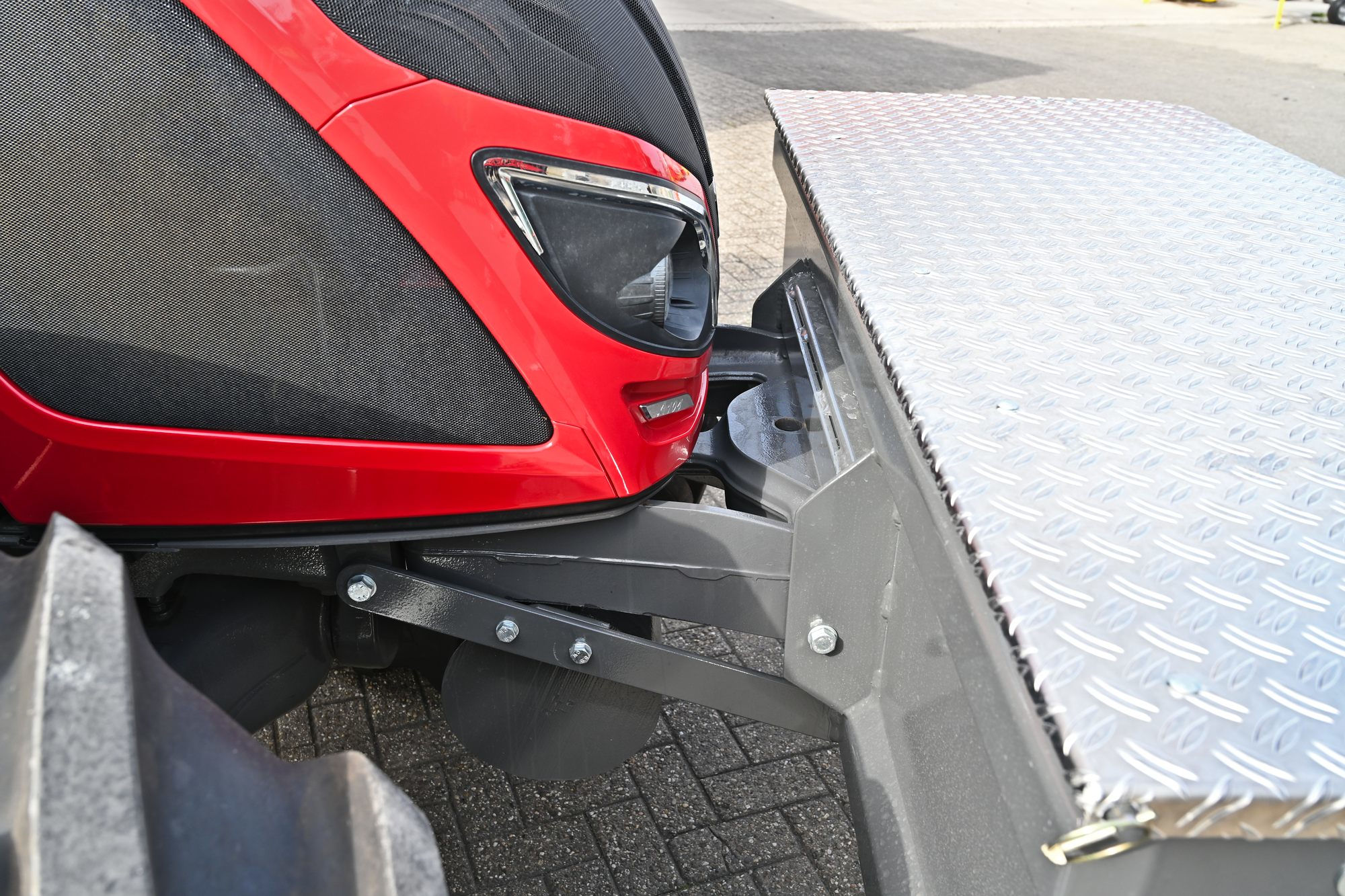 Gemeinsam mit der STEGEMANN Maschinenbau fertigten wir hierfür eine stabile Werkzeugkiste aus 3 mm Stahlblech, die verstärkt mit Stangenschanieren in der Aufnahme für Frontgewichte befestigt ist.