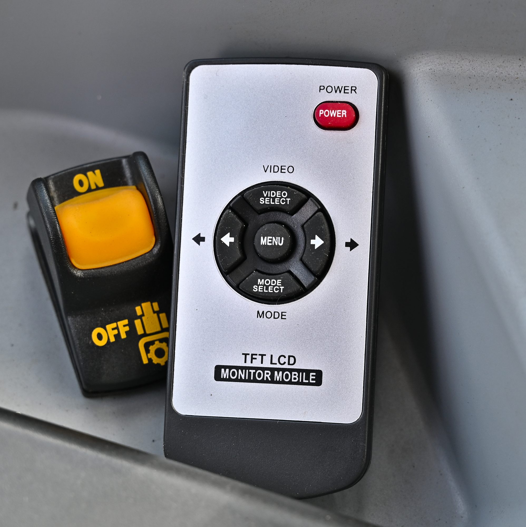 In der Kabine zeigt eine Kamera dem Fahrer genau wo in den Boden gestochen wird. Über eine Fernbedienung werden dann Bodenproben entnommen.