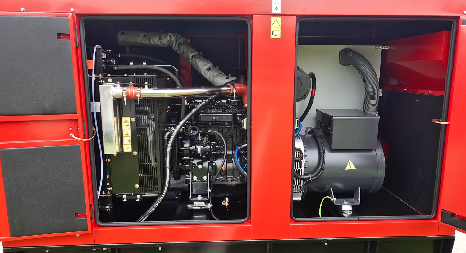Stromaggregate werden als offene Aggregate oder mit Schalldämmung für Installationen im Freien angeboten. Aggregate für den Außeneinsatz sind betriebsbereit mit vormontierten Abgasleitungen und robusten Tragestrukturen.